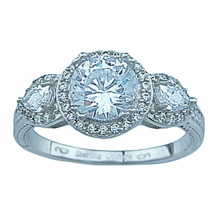 925 Sterling Silver Three Stone Halo Promise Rings For Her Engagement Rings Make Great Gifts For Women