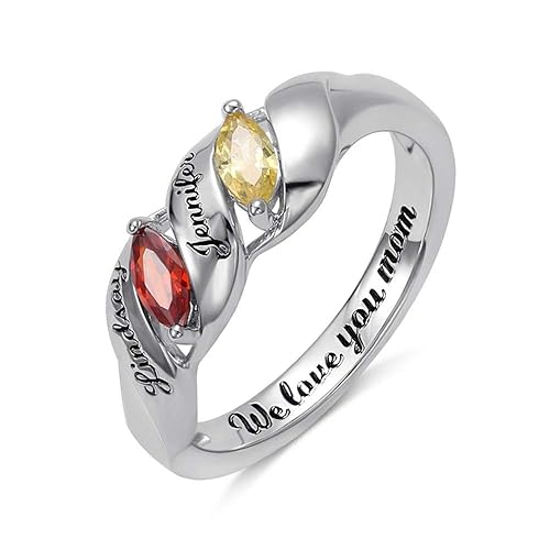 Personalized Simulated Birthstones Promise Rings For Her Engraved Names Engagement Rings Bridesmaid Gifts