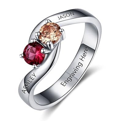 Love Jewelry Personalized Simulated Birthstones Promise Ring For Her Engraved Valentine S Engagement Ring For Couples