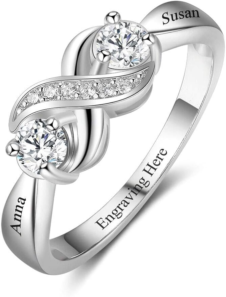 Tian Zhi Jiao Personalized Infinity Engagement Promise Rings For Her Custom 2 Simulated Birthstone Mothers Rings Engraved 2 Names Jewelry For Women