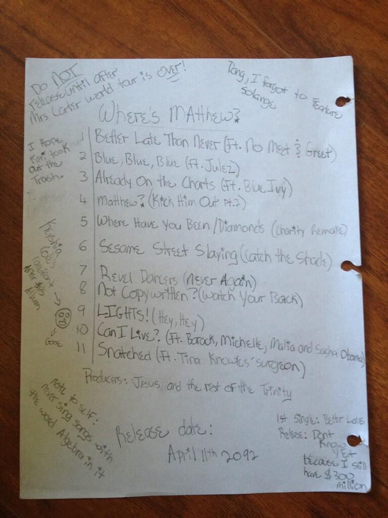 Beyonce Tracklist Leaked Photo Shows Likely Fake Songlist For